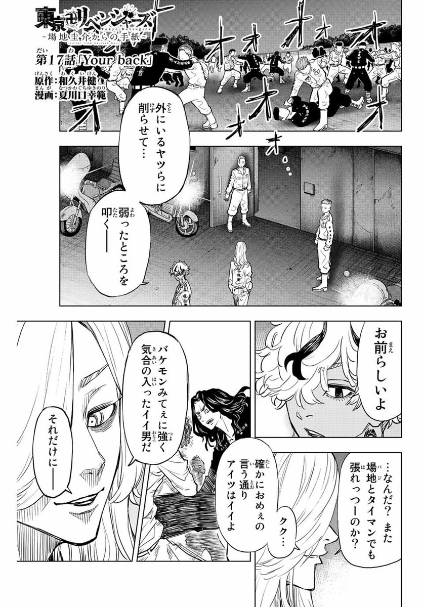 "Your back" is the 17th chapter overall of the Tokyo Revengers: Letter from Keisuke Baji spin-off series, written and illustrated by Natsukawaguchi Yukinori.
