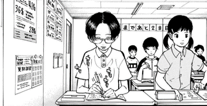 Hina recalls that Kisaki was the most studious kid at her cram school, placing first in the national mock exams. Despite this, Kisaki keeps to himself and is isolated from his peers. Because they lived in the same neighborhood, he and Hina walked home together often. Hina says that she doesn't know how he is doing now, since he attends a private middle school.